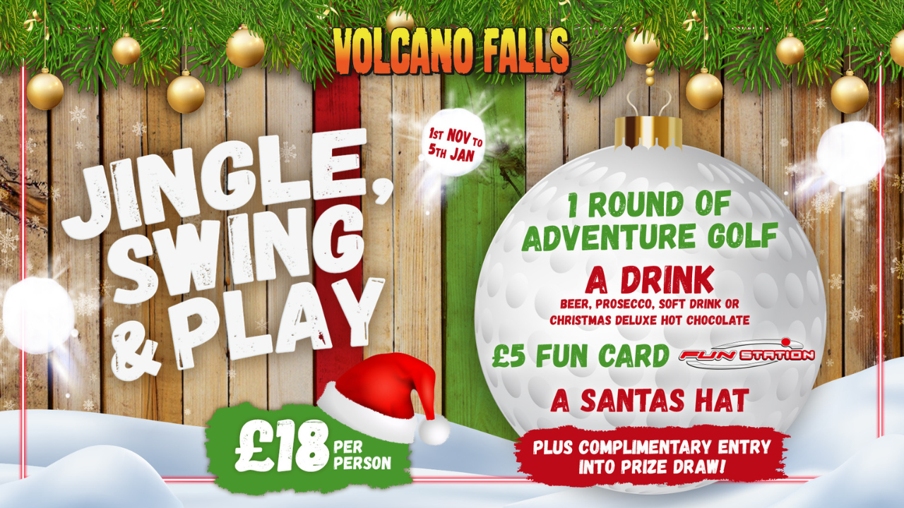 Looking for a festive experience that’s fun for families, couples, or small groups? Volcano Falls’ Jingle, Swing & Play package has everything you need for a merry day out: